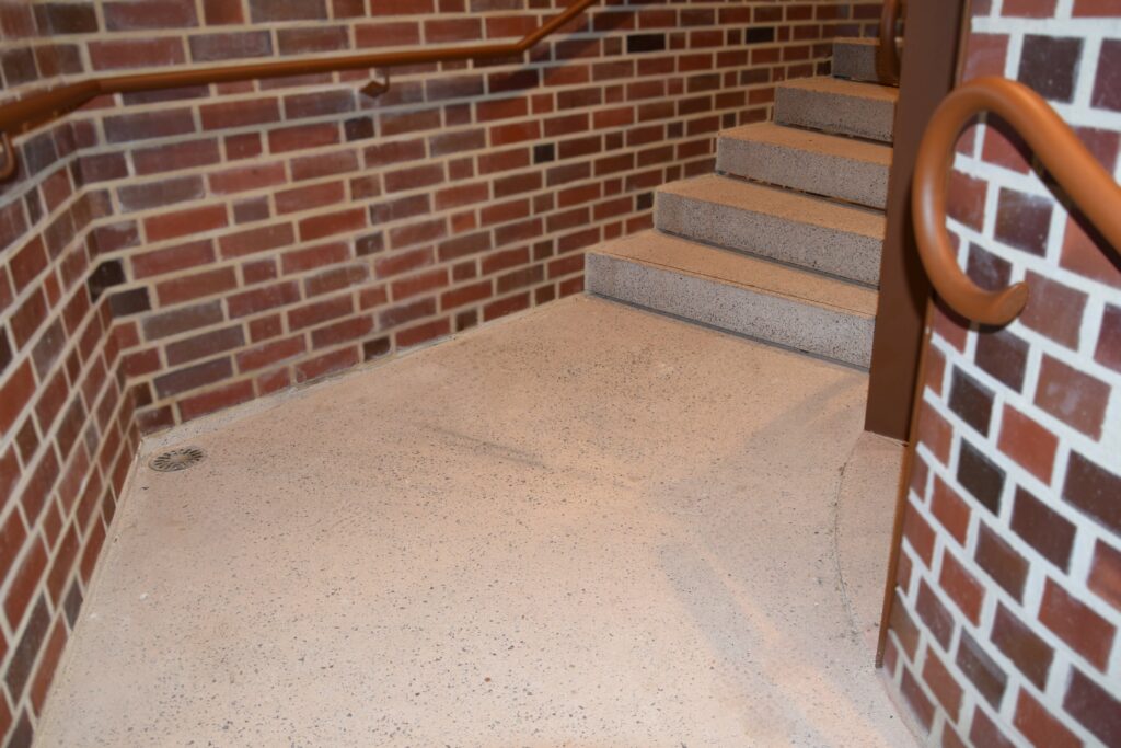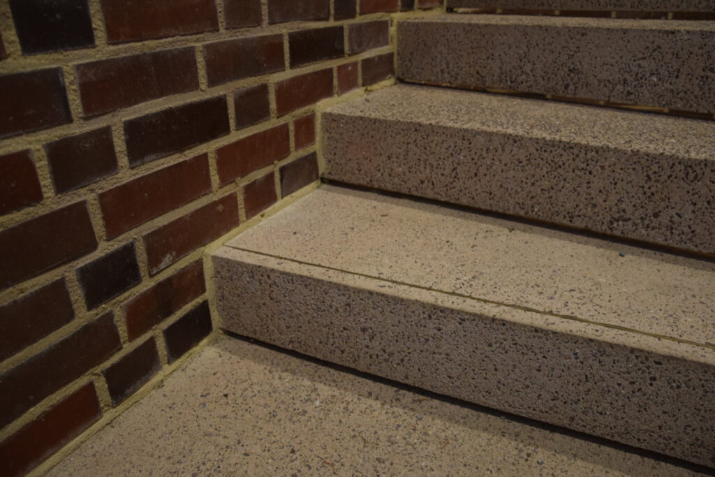 Uitvoering: gewassen wit sierbeton met rood siergranulaat.