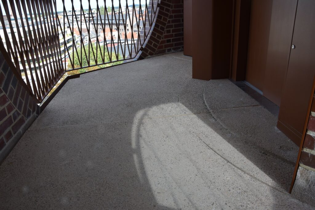 Omschrijving: Op de site is een 30 meter hoge panoramatoren opgetrokken die bereikbaar is via 145 treden en geeft een adembenemend uitzicht over de stad. We vervaardigde de 145 traptrede, bordessen en vloerplaten en daarbij ook nog de plinten en dekstenen. Een echte blikvanger in de skyline van Hasselt.